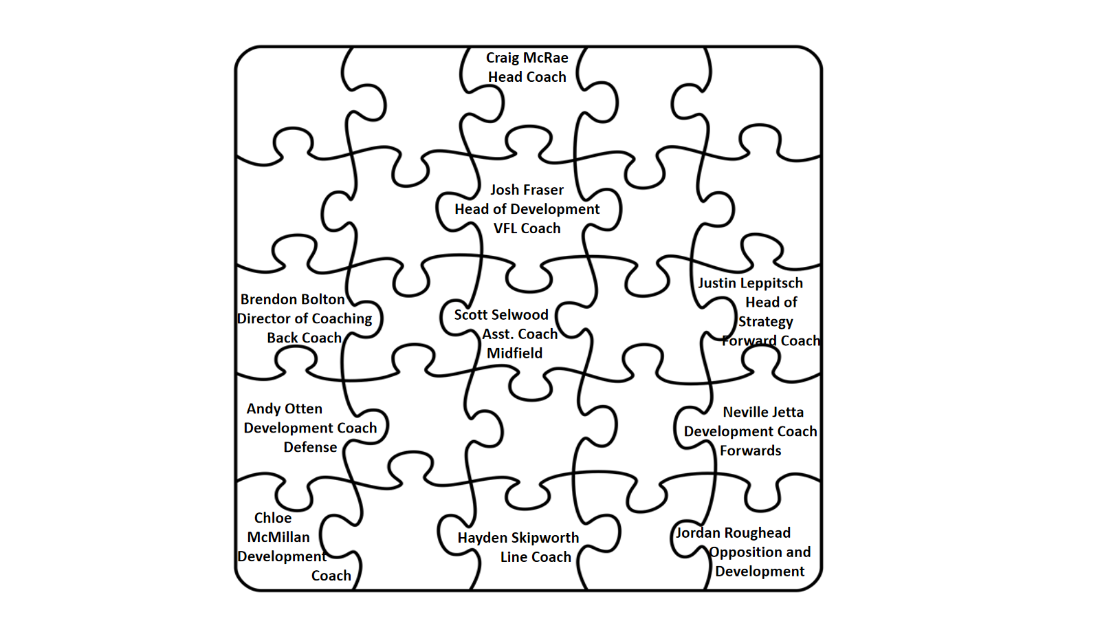 Josh Fraser (Head of Development), Jordan Roughead (Opposition and Development Coach) and Chloe McMillan (Womans Coach) were also members of the coaching panel.